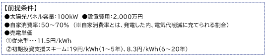 初期投資支援スキームは従来型と比べて、どのくらいメリットが出るのか、一番気になる部分だと思います。今回は、以下の前提条件のもと、従来型と初期投資支援スキームでの数値メリットの比較を行ってみました。