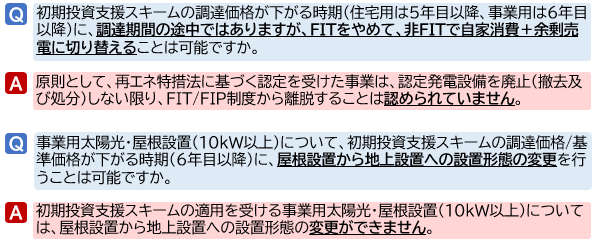 これまで、FIT制度(固定価格買取制度)では、10kW未満の住宅用、10kW以上の事業用ともに、一定期間(10年・20年)固定価格の買取単価が設定されていましたが、今後は、期間内の一部で買取単価が変更となる形となりました。
